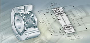 單列角接觸球軸承中,滾道的設(shè)計(jì)形式使作用力與徑向平面傾斜,并以特定的接觸角度從一個(gè)滾道傳遞至另一個(gè)滾道。軸向承載能力隨接觸角的增大而增大。由于單列角接觸球軸承具有較大的接觸角,因此,同深溝球軸承相比,更適于承受較大的單向軸向力。單列角接觸球軸承能夠承受徑向載荷和單向的軸向力。它們可以通過(guò)另一個(gè)反向安裝的軸承進(jìn)行調(diào)節(jié)。 雙列角接觸球軸承的設(shè)計(jì)類(lèi)似于一對(duì)O 型布置的單列角接觸球軸承。在這種情況下,軸承壓力線的頂角指向外部。雙列軸承能夠承受較大的徑向力及雙向的軸向力并且特別適用于實(shí)現(xiàn)軸向剛性引導(dǎo)的軸承布置。根據(jù)不同系列,軸承可以設(shè)計(jì)帶有或不帶裝球缺口。